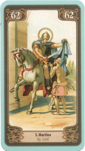 Em França, numa noite fria e chuvosa, Martinho seguia montado no seu cavalo quando se cruzou com um mendigo pobre e esfarrapado, que lhe pediu esmola. Não tendo nem uma moeda, puxou da espada e cortou ao meio a sua capa vermelha, dando-lhe metade para que se cobrisse do frio. Reza a lenda que esse homem era Jesus Cristo e que um milagre aconteceu: nesse momento a chuva parou e o sol apareceu por entre as nuvens.