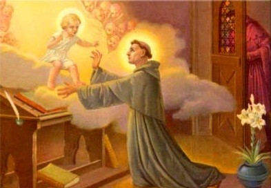 Conta uma lenda que numa passagem de Santo António pela cidade italiana de Pádua, o santo hospedou-se em casa de um homem muito rico. Estava Santo António recolhido num dos aposentos quando o dono da casa o surpreendeu a conversar com o Menino Jesus. Completamente estupefacto com o que estava a ver, o Santo fez o homem jurar que só revelaria o que tinha presenciado após a sua morte.