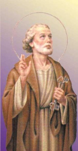 Considerado pelos Católicos como o primeiro Bispo de Roma, Pedro ou Simão, nasceu na Galileia, no século I a.c. Era de origens humildes e com André - seu irmão e mais tarde um dos apóstolos também – geria uma pequena “empresa” com uma frota de barcos de pesca. Segundo o Evangelho de S. Lucas foi durante um dia de trabalho que Pedro conheceu Jesus, num dia em que este lhe quis alugar uma barca para se deslocar para uma povoação mais longe, onde pretendia pregar. Consta-se que quando Jesus baptizou Simão com o nome de Pedro (oriundo de Kepha que em armaico significa pedra ou rocha) lhe disse:”tu és Kepha e sobre esta kepha edificarei a minha Igreja e as portas do inferno não prevalecerão nunca contra ela." Na realidade, Jesus quis demonstrar a Pedro que o encarregava de ser o fundador da sua Igreja, tal como mais tarde aconteceu. São Pedro é festejado no dia 29 de Junho, e é considerado o protector dos pescadores de das viúvas, guardião dos céus e do tempo. É ele que abre as portas do paraíso. No nosso país, existem várias localidade cujo o seu padroeiro é São Pedro, destacando-se, por exemplo, Sintra.