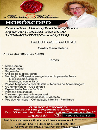 Vagas Limitadas!! Inscreva-se Já!!! Para mais informações entre em contacto com o Centro Maria Helena TLF:210 929 000 ou para o e-mail mariahelena@mariahelena.pt