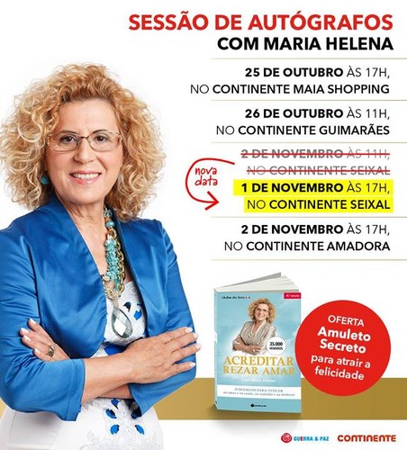 Meu anjo, depois do grande sucesso do Lançamento do meu novo livro em Lisboa - "Rituais de Luz" Orações e Rituais para proteger a sua Vida e realizar os seus Desejos e após muitos pedidos, agora vou estar também no Continente do MaiaShopping e no Continente de Braga à sua espera para lhe dar um grande beijinho e lhe oferecer um Ritual de Luz Secreto para proteção na sua vida!
