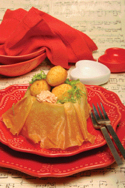 Preparação: Demolhe as folhas de gelatina em água fria. Deite o leite condensado cozido para uma tigela, junte as gemas e bata bem. Junte