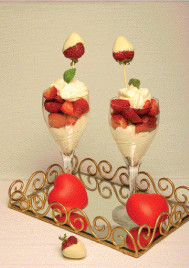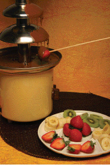 lume, passe pelo passador de rede e divida este preparado, em partes iguais, por duas taças diferentes. Deixe arrefecer um pouco.