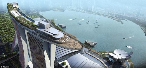 Foi feita no impressionante "Skypark", um espaço de lazer em forma de barco, empoleirado sobre as três torres que compõem o hotel mais caro do
