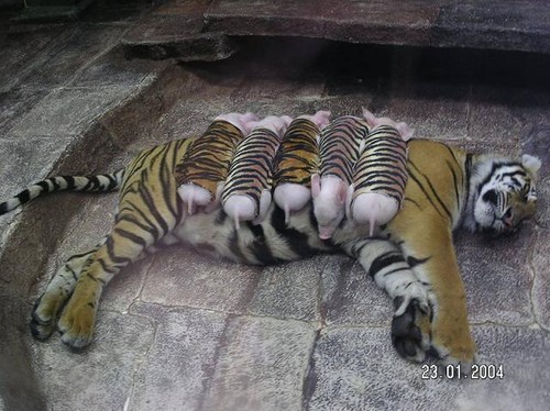 Às vezes a mãe de uma espécie cuida dos filhotes de uma espécie diferente. Os únicos órfãos que puderam ser encontrados rapidamente foram as crias de uma porquinha. Os funcionários do Zoológico e os veterinários revestiram os porquinhos com pele de tigre e puseram os bichinhos ao redor da mãe tigre. Eles iriam tornar-se a cria da tigre ou um lombinho??? Veja o que aconteceu... não vai acreditar nos seus olhos!